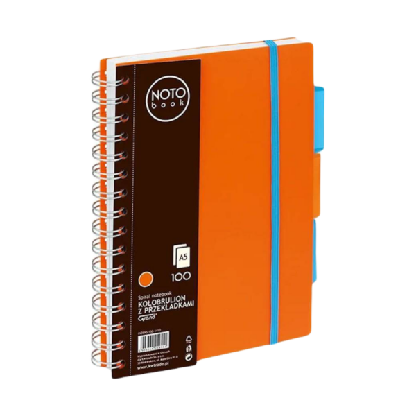 1,85 €Kaustik spiraalköites A5 GRAND 5×5 värvilise registriga plastikust kaanega oranž 100 lehte