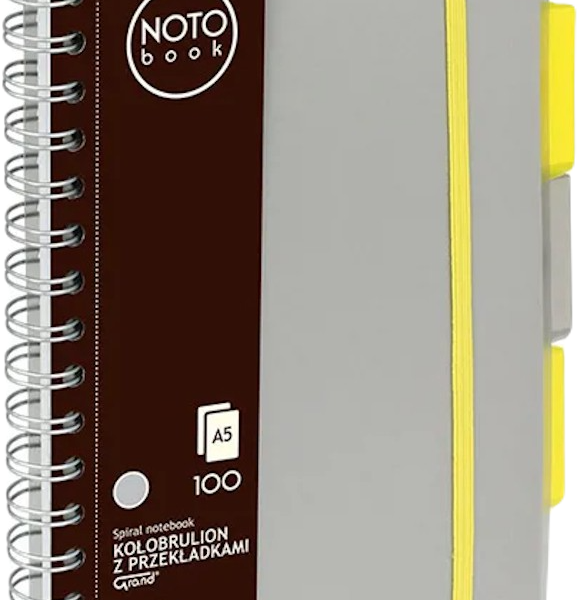 Kaustik spiraalköites A5 GRAND ruuduline registriga plastikust kaanega 100 lehte sinine
