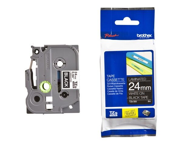 Brother TZe-355 (TZE355) Laminated Labelling Tape Cassette, White On Black 24mm, 8m