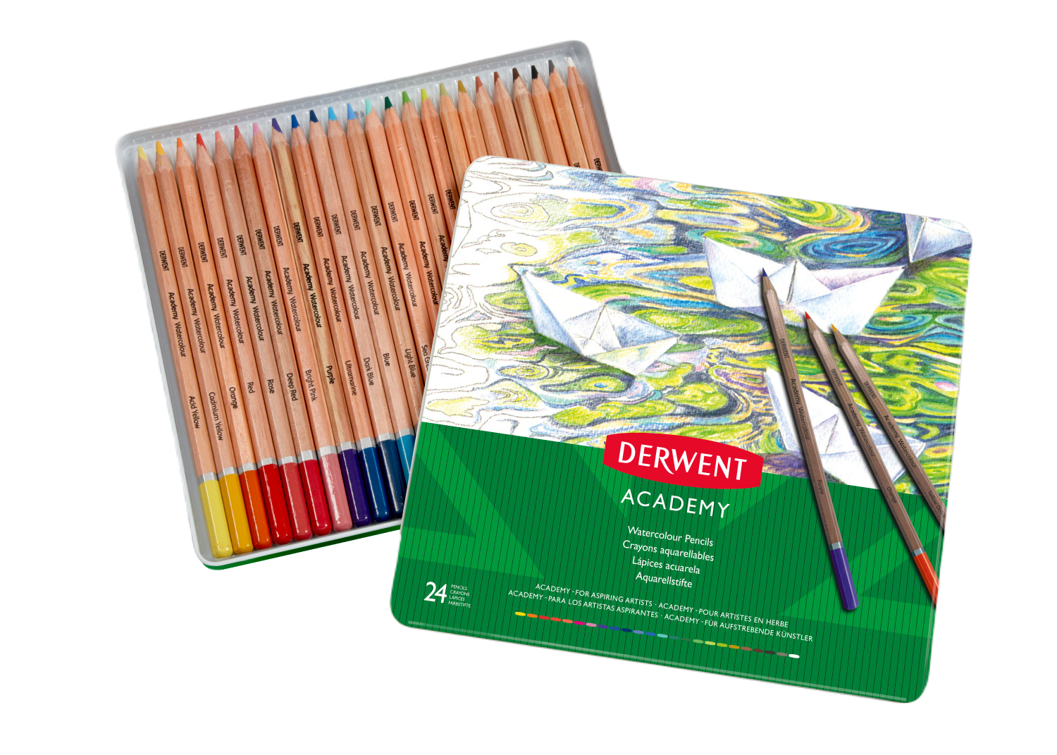 Akvarellpliiatsid DERWENT Academy 24värvi metallkarbis