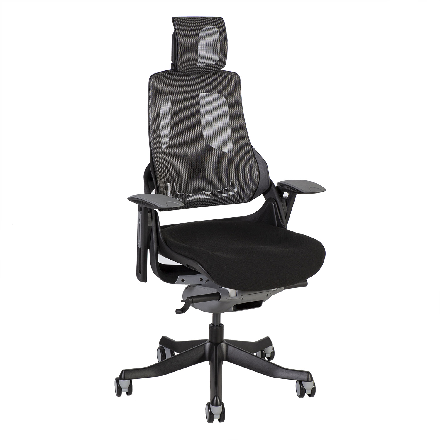 Töötool WAU must/hall. WAU toolis on ühendatud suurepärane ergonoomika ja sportlik stiil, pakkudes parimat tuge ja rahulolu terveks tööpäevaks. Tooli väliskorpus on valmistatud mustast plastikust ja raami sisemised osad on vormitud hallist plastikust (100% PP taaskasutatav). Seljatoe plastikraam on tugevdatud fiiberkiuga. Tooli polsterdatud iste on kaetud musta polüesterkangaga, Martindale’i väärtus 50 000. Tooli seljatugi on kaetud õhku läbilaskva halli võrkkangaga (76% polü-elastomeer, 24% polüester), Martindale´i väärtus 100 000. Võrkkanga koostisesse kuuluv elastomeer filamentkiud tagab materjali kõrge tõmbetugevuse ja väga hea vastupidavuse. Toolil on sünkroonmehhanism. Seljatoe kaldenurk on lukustatav ja kaldepinge tugevus reguleeritav. Istme kõrgus on reguleeritav gaasamordi abil. Pea- ja seljatoe kõrgus on reguleeritav. Toolil on reguleeritav nimmetugi. Käetugede katted on valmistatud hallist elastomeer termoplastikust. Käetugede kõrgus ja pöördenurk on reguleeritavad. Tooli 5-haruline jalarist on valmistatud valualumiiniumist ja viimistletud musta epoksiidpulbervärviga. Toolil on 60mm põrandat säästvad nailonrattad. Tooli üldmõõdud on 70x70xH112-129cm. Istme laius 47cm, istme sügavus 49cm, istme kõrgus 40-48cm. Kaalupiirang 120kg.