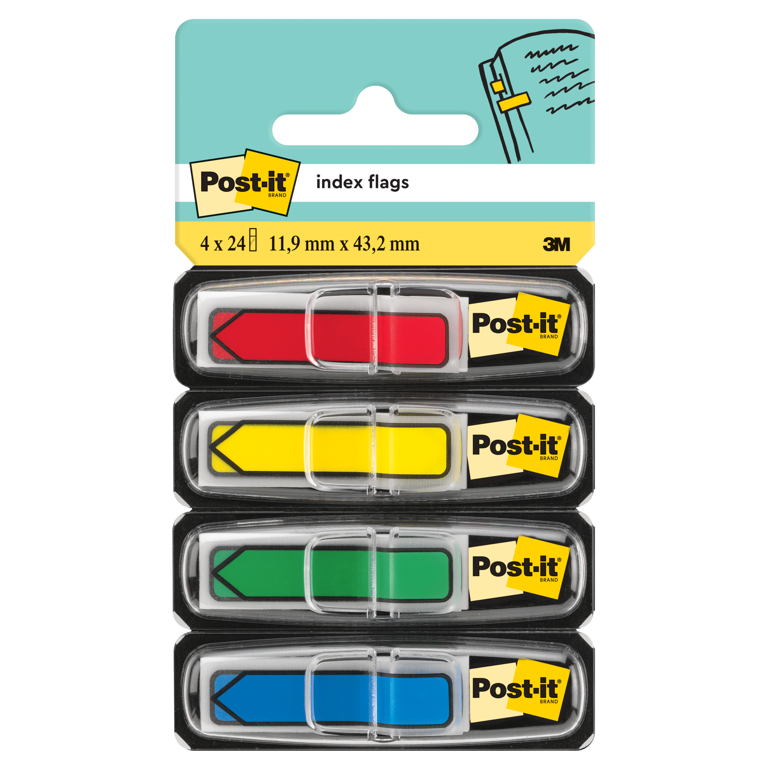 • Noolekujulised Post-it® järjehoidjad • 4 värvi pakendis (sinine, punane, roheline ja kollane) • Järjehoidja mõõdud: 11,9 x 43,2mm • Pakendis 4×24 järjehoidjat