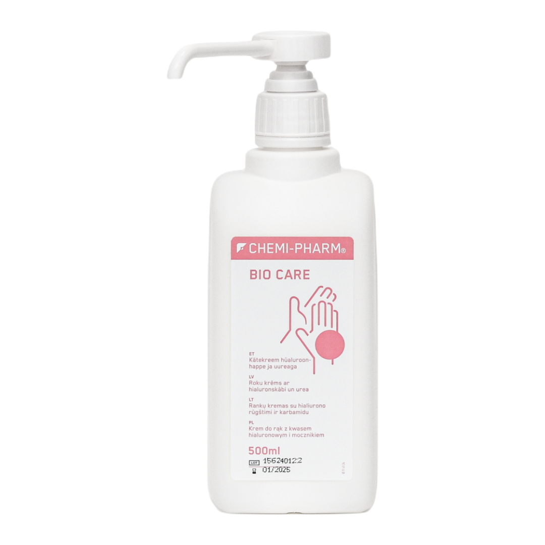 BIO CARE kätekreem naturaalsete õlide, uurea ja hüaluroonhappega imendub kiiresti, ei jäta nahka rasvaseks. Eriti sobib kasutamiseks tervishoiuasutustes, kus on vajalik kaitsekinnaste kasutamine, sagedane käte pesemine ja antiseptika. Tänu BIO CARE spetsiaalsetele komponentidele on toode sobilik kasutamiseks just kuivale, tundlikule kui ka kahjustatud nahale.