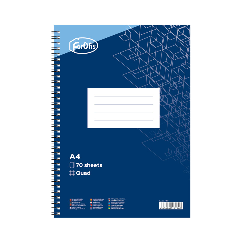 • Formaat: A4, 70 lehte, 60g/m2 • augustatud lehtedega • Ruuduline 5×5 • Kartongkaanega kaustik • Küljel spiraalköide