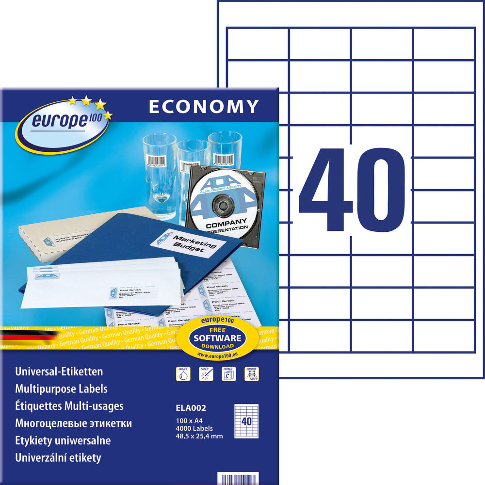 • Kandiliste nurkadega kleebisetikett • 100 lehte pakis • Lehel 40 etiketti