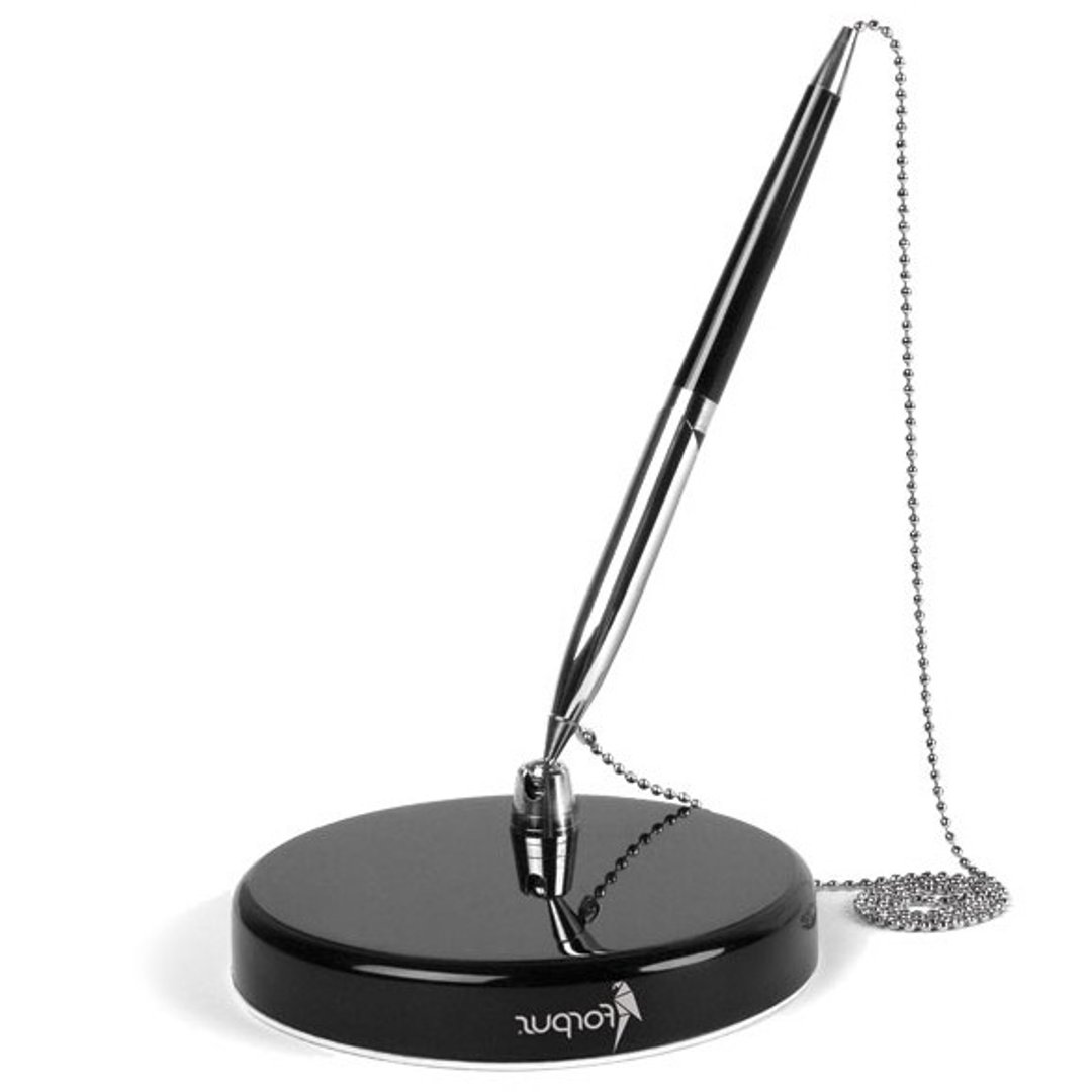 Kliendipliiats lauale musta korpusega hõbedase ketiga Forpus