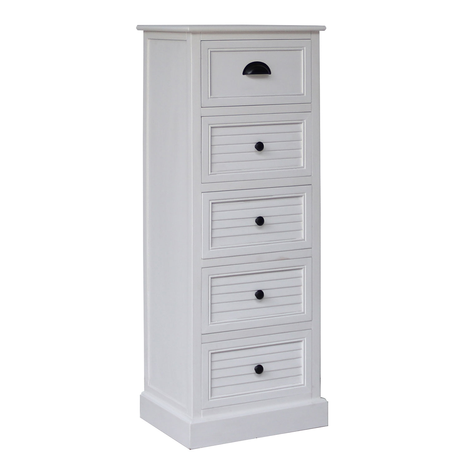 Kummuti põhikonstruktsioon ja sokkel on valmistatud männipuidust. Pealmine lauaplaat, sahtlid ja paneelid on värvitud MDF. Kapp on viimistletud valge värviga. Metallist käepidemetega sahtlid on ilma siinideta.