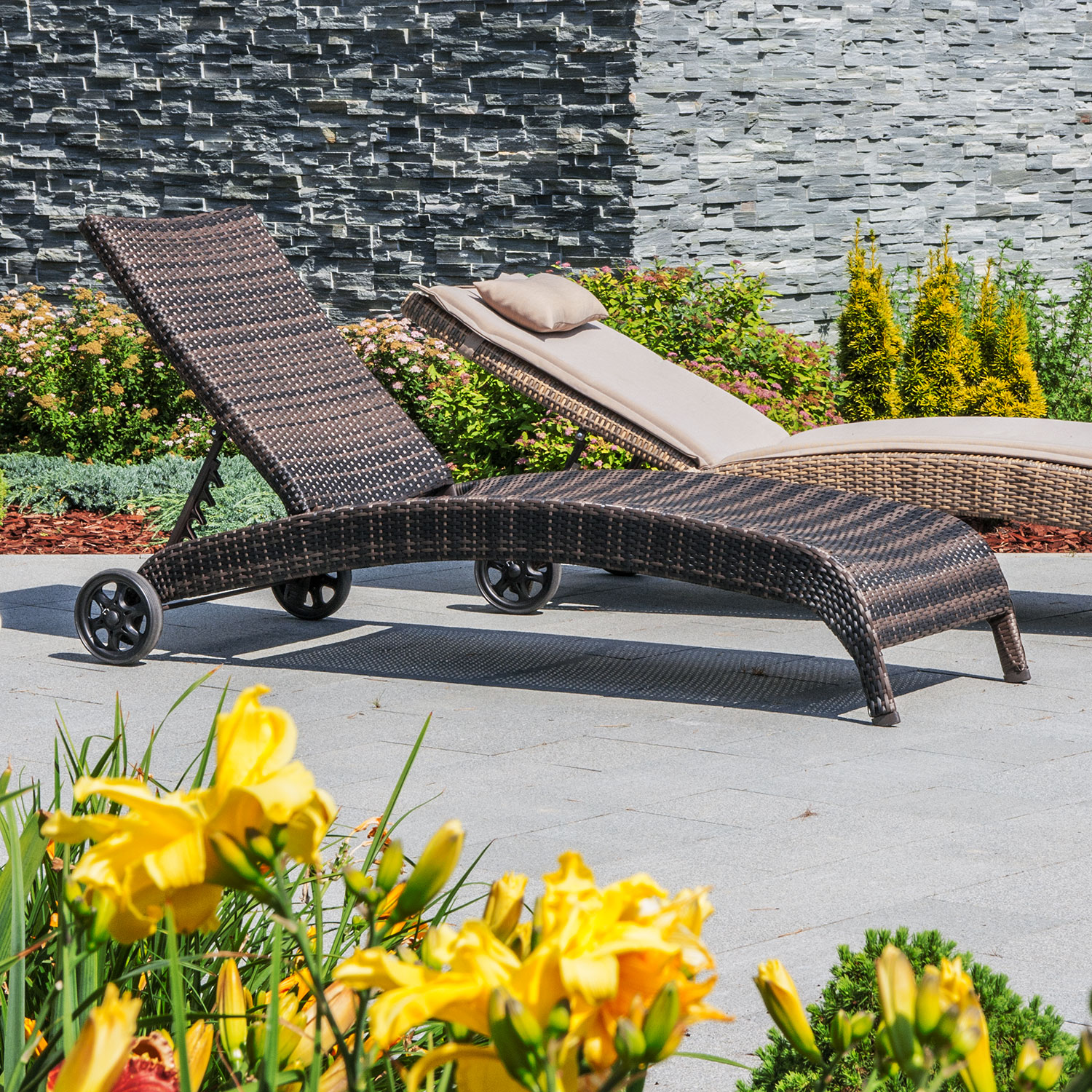 Lamamistool WICKER 73x196xH99cm, tumepruun. Klassikaline plastikpunutisega lamamistool on mugav, vastupidav ja ilmastikukindel ning kombineeritav teiste WICKER MIX&MATCH sarja toodetega. Lamamistooli alumiiniumraam on kaetud plastikpunutisega. Tooli seljatugi on reguleeritav. Lamamistooli kate ei kuulu komplekti. Kaalupiirang 100kg. HOIUSTAMINE: suvehooaja lõppedes soovitame aiamööblit hoiustada siseruumides. Puhastage ja kuivatage mööbel enne hoiule panekut. Kasutage hoiustamiseks jahedat, kuiva ning hea ventilatsiooniga ruumi.