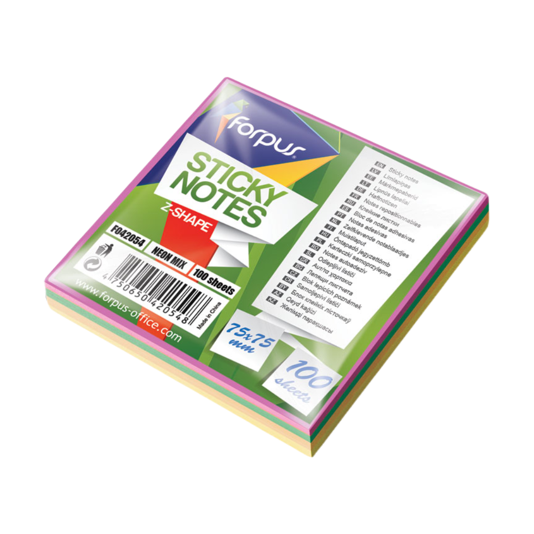 • Värviline isekleepuv Z märkmepaber • Mõõdud: 76x76mm • 100 lehte pakis