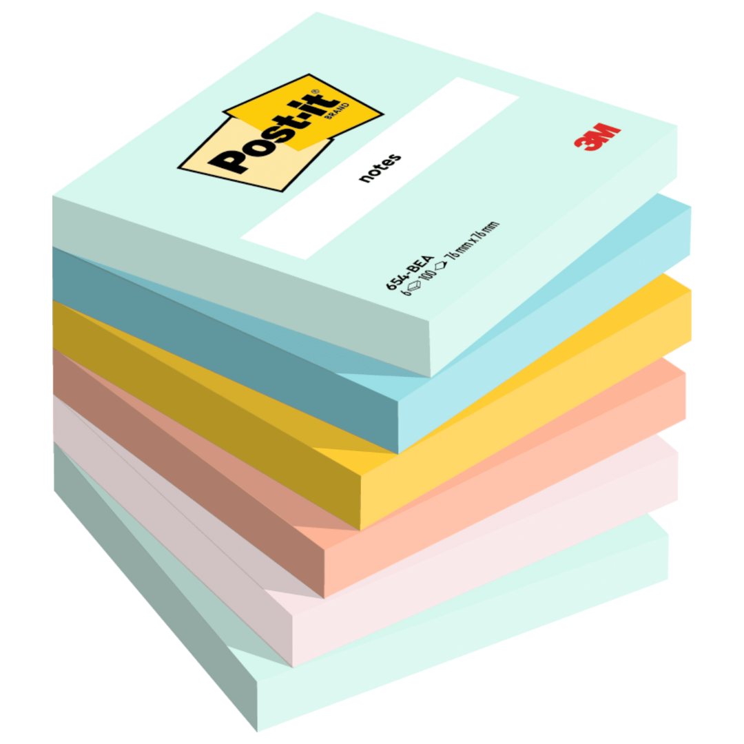 Märkmepaber 76x76mm POST-IT Beachside 6546BEA pastelsed 6×100 lehte