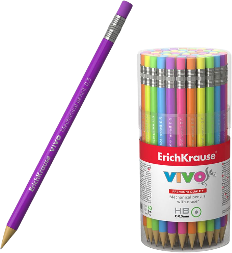 • Kustukummiga mehaaniline harilik • Värviline korpus • Karbis 60tk erinevat värvi korpustega