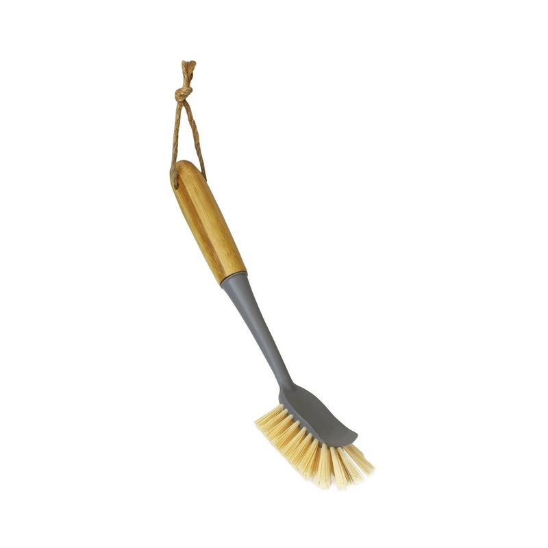 Nõudepesuhari bambusest. Jäigad harjased on teie taldrikutele õrnad, kuid mitte mustuse suhtes. Ideaalne lisamaks teie valamupiirkonnale retrohõngu ja ohutu kasutada mittenakkuvatel pindadel.