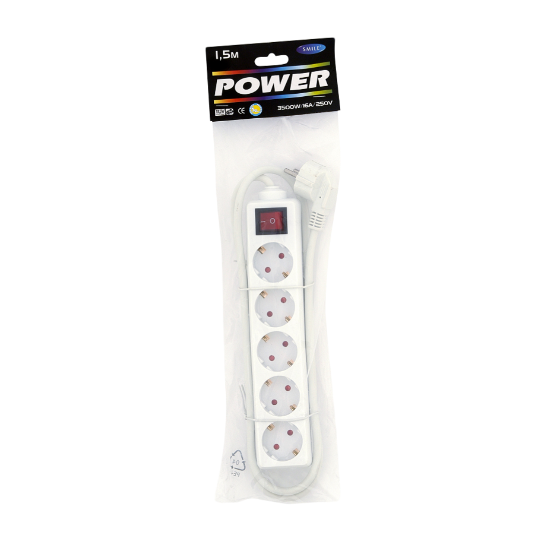 Pikendusjuhe 1.5 meetrit. Maanduse, lapselukuga ja lülitiga pikendusjuhe 1,5m, 5 pesa, valge 1,5mm. Sobib kasutamiseks sisetingimustes