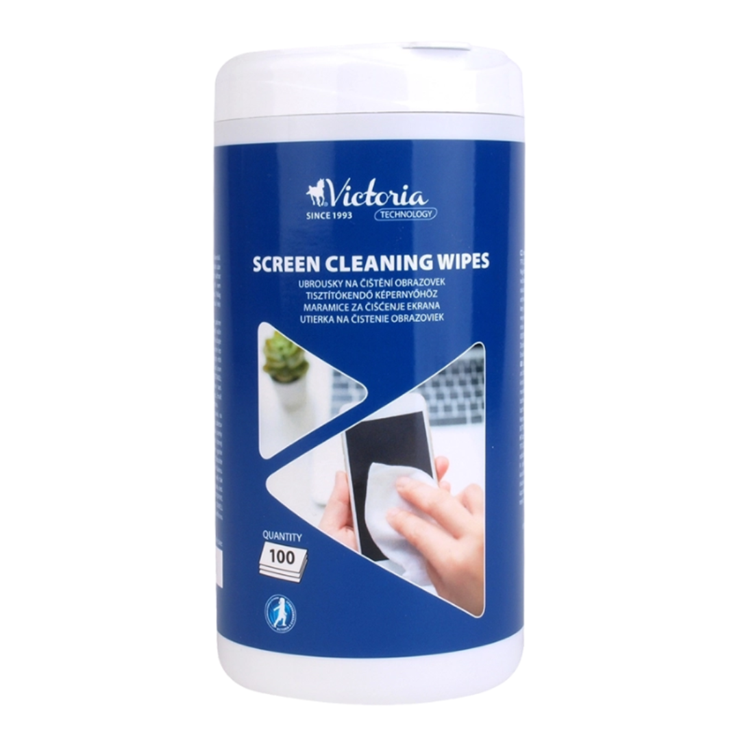 Puhastuslapid ekraanile niisutatud Victoria.