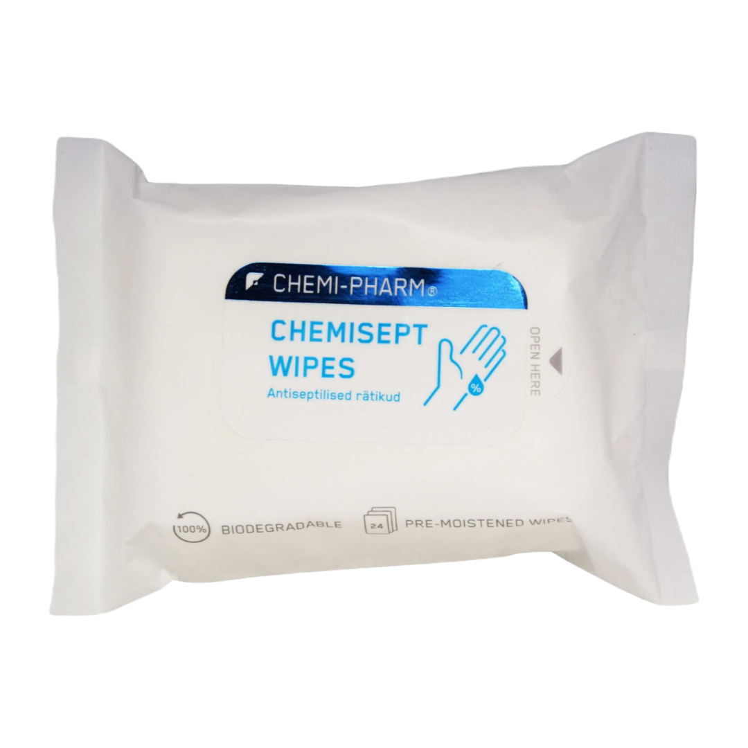 Chemisept Wipes käte antiseptikumiga immutatud rätikud sobivad kasutamiseks vee ja seebi asemel või nende puudumisel kui käed ei ole silmnähtavalt määrdunud.