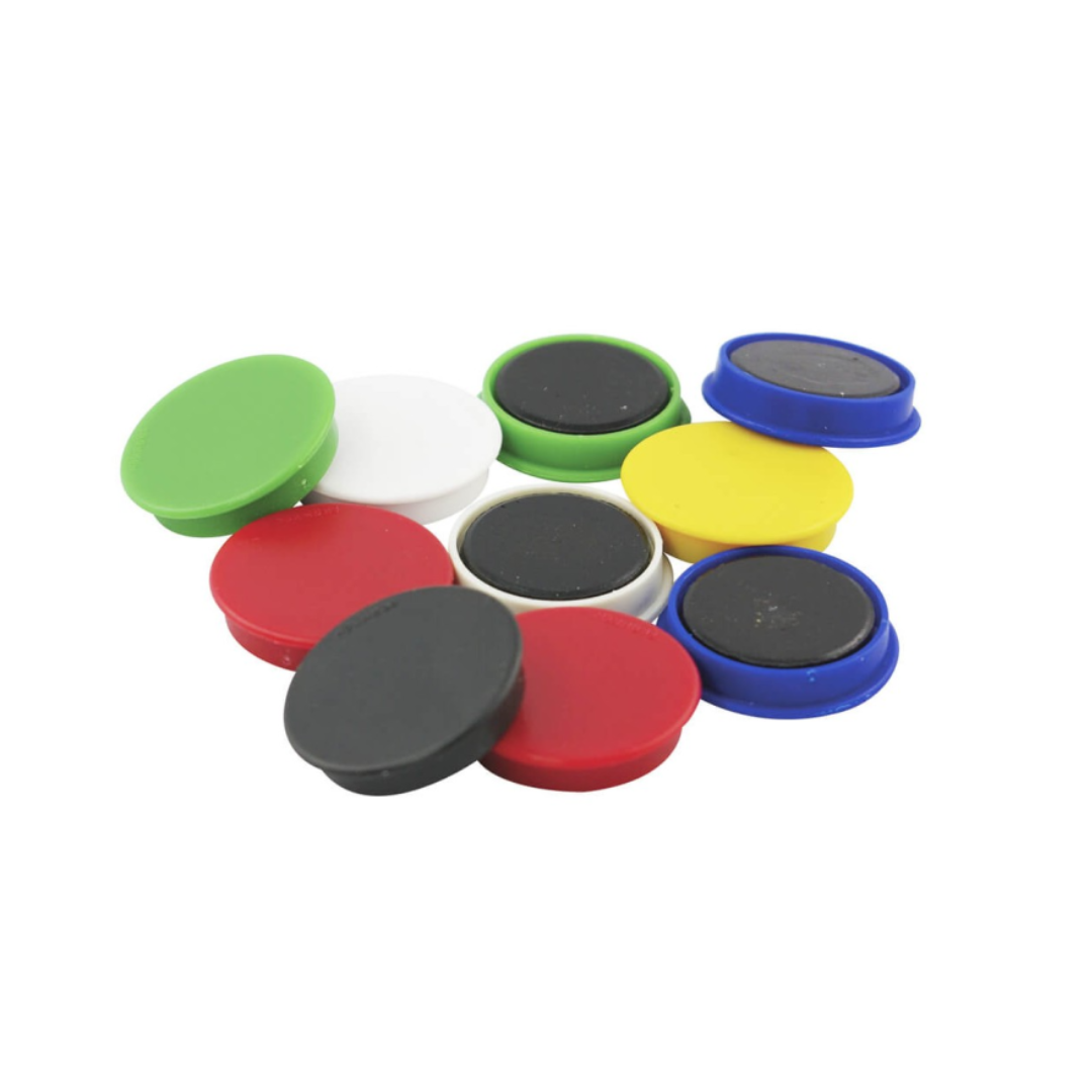 • Tugevad magnetid • Diameeter: 24 mm • Kõrgus 7mm • Tugevus: 3N • 10 tk pakis • Värv: assortii