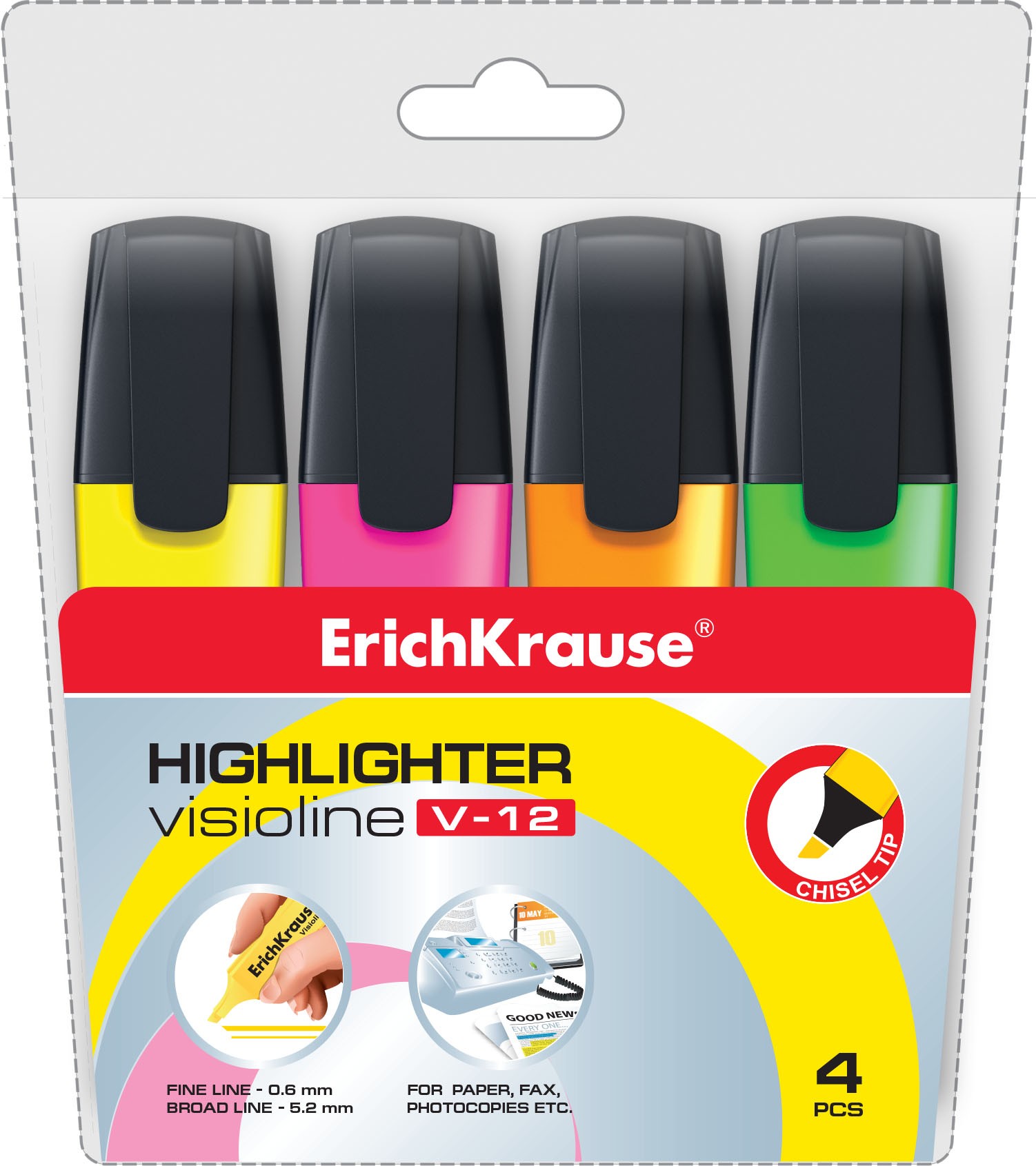 Tekstimarkerite komplekt (kollane, roheline, oranz ja roosa) • Tekstimarker, lõigatud otsaga • Joone laius: 1,5-5mm • Erinevad erksad ja tugevad värvid