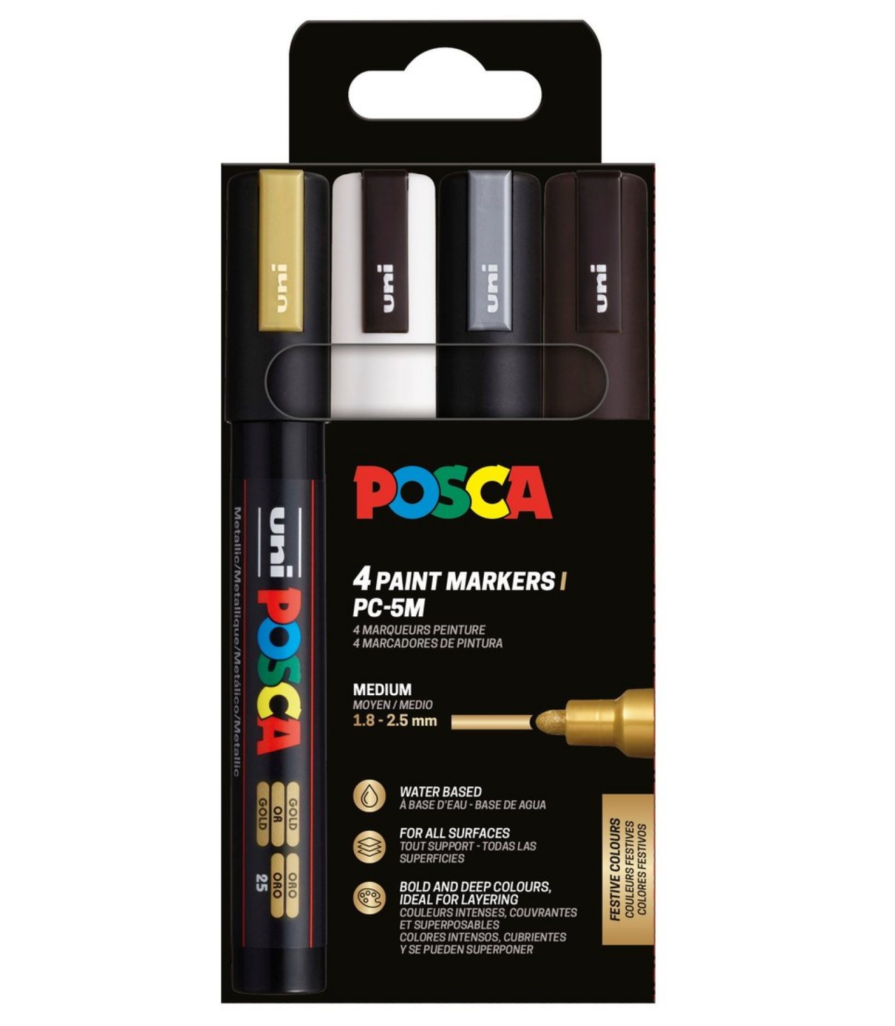Komplektis 4 markerit: kuld, valge, hõbe, must