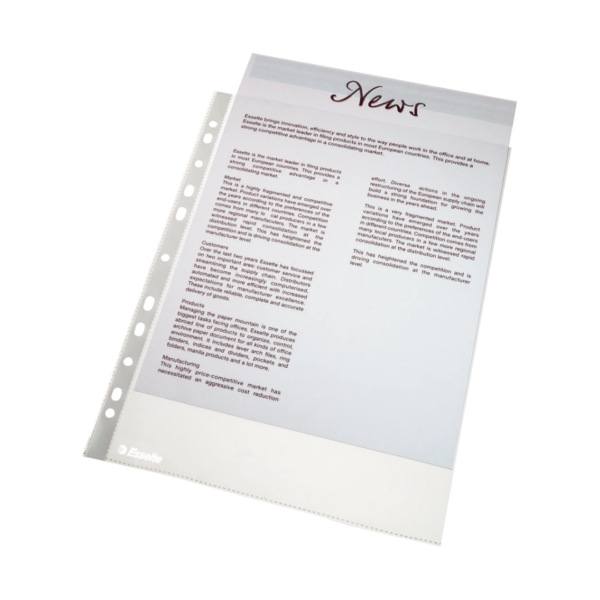 Kiletasku köidetav A4 ESSELTE 80mic ülevalt avatud kirgas 100tk