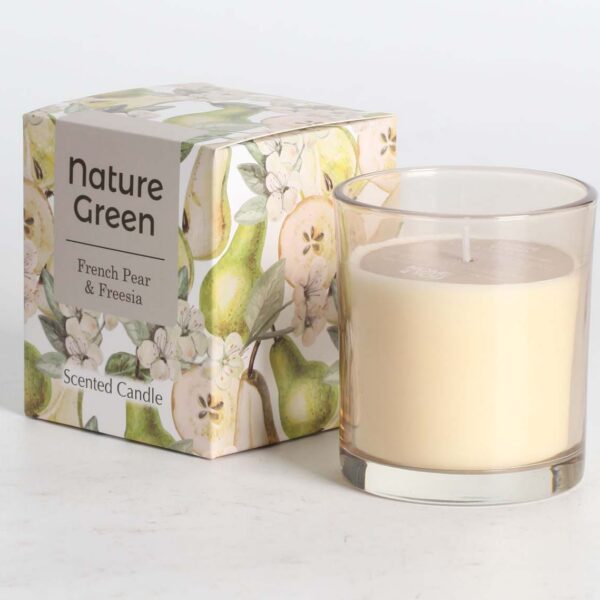 Lõhnaküünal klaasis NATURE GREEN H9,5cm, French Pear & Freesia