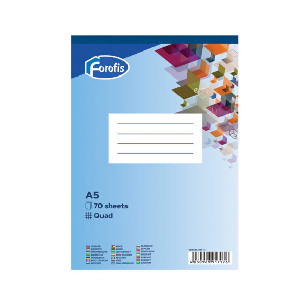 Kirjaplokk liimköites A4 ruuduline augustusega 70 lehte FOROFIS