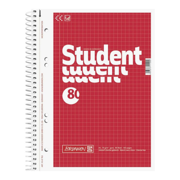 2,19 €Kaustik spiraalköites A5 ruuduline BRUNNEN Student perf.-ga kartongkaaned 80 lehte