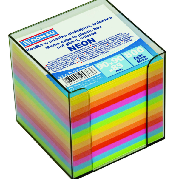 Märkmekuup DONAU 90x90mm liimita lehed neoonvärvid 800 lehte